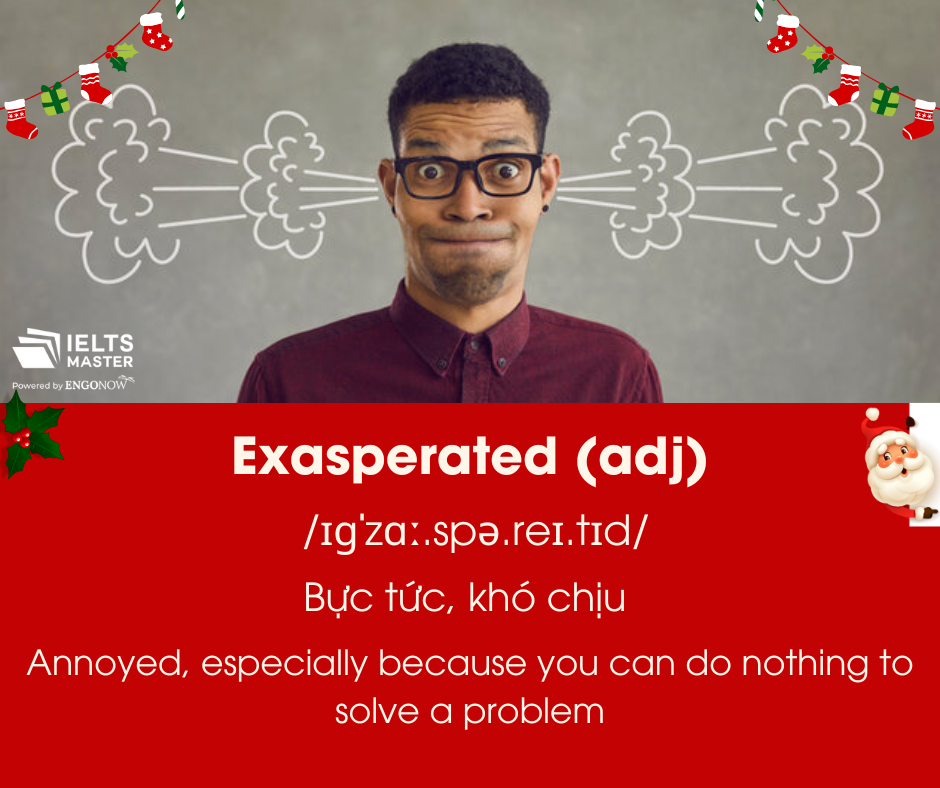 Chào các bạn, mình là Khang đến từ Trung tâm Ngoại ngữ IELTS MASTER HCM – ENGONOW. Hôm nay mình rất vui khi có thể chia sẻ đến các bạn những từ vựng “Exasperated”. Chúc các bạn học tốt nhé!