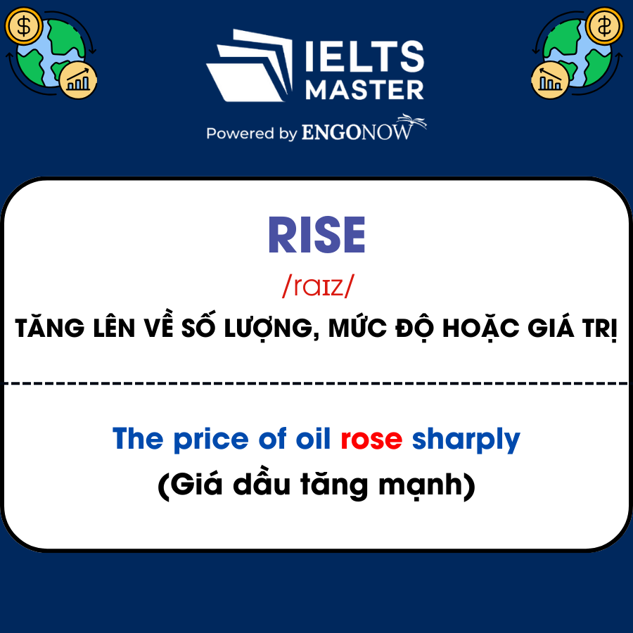 - Rise /raɪz/: Tăng lên về số lượng, mức độ hoặc giá trị