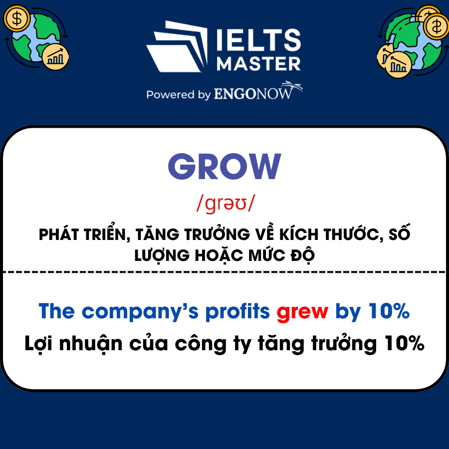 - Grow /ɡrəʊ/: Phát triển, tăng trưởng về kích thước, số lượng hoặc mức độ