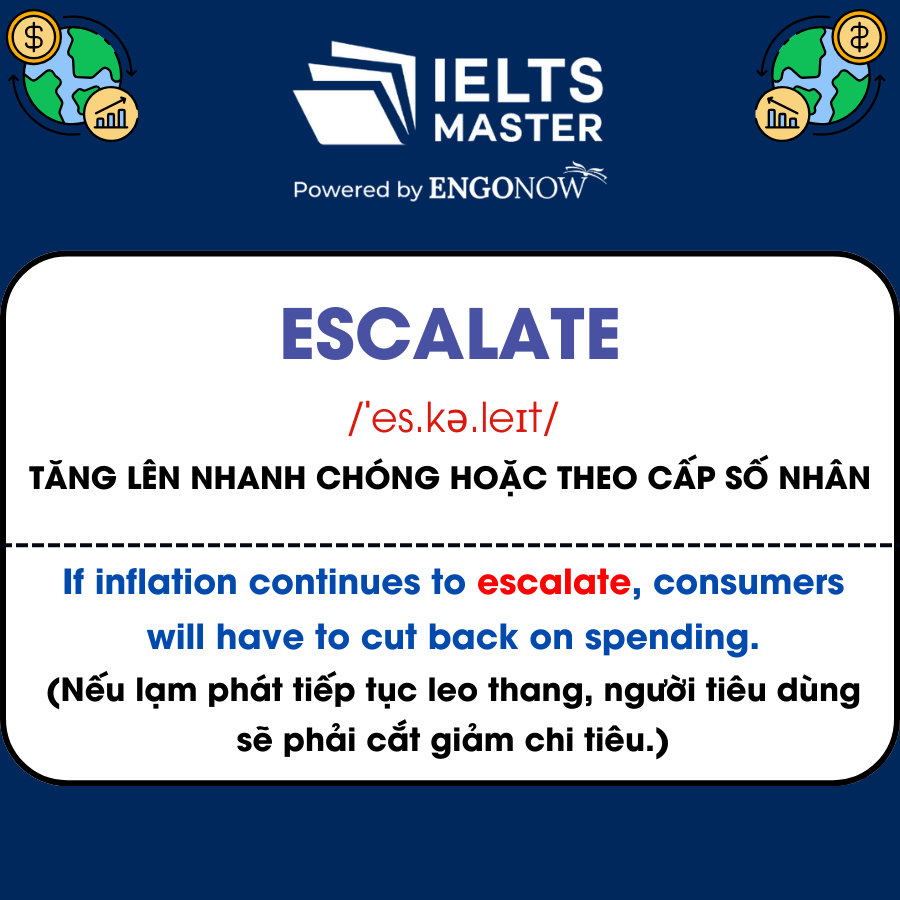 - Escalate /ˈes.kə.leɪt/: Tăng lên nhanh chóng hoặc theo cấp số nhân