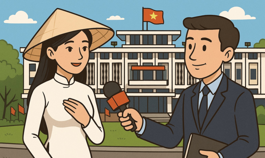 Bỗng bạn đang chill lễ 30/4 mà bị phóng viên ‘dí mic’ hỏi bất ngờ?Đừng để bị ‘đứng hình’! Bỏ túi ngay câu trả lời song ngữ siêu chất...